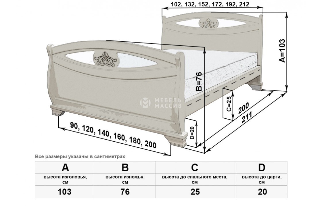 Кровать Эльза имеет две идентичные спинки, отличающиеся аккуратной изогнутостью, декоративными углублениями и цветочными узорами. Изделие, которое можно купить по специальной цене в нашем интернет-магазине, оснащено устойчивыми ножками, защищающими напольное покрытие от повреждений. Осуществляется доставка на дом по Пятигорску и Ставропольскому краю .| Размер | Цена | |